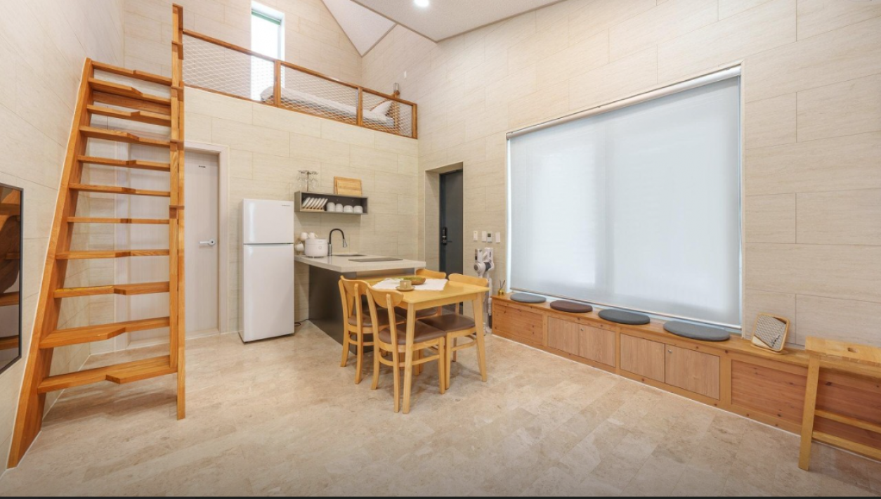 복층, 룸1, 더블침대2, 화장실(비데)1, 욕조1,거실